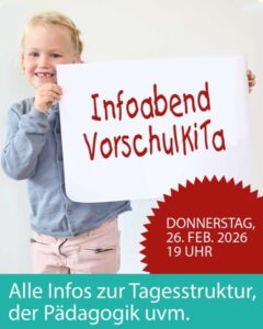 An diesem Abend speziell für die VorschulKiTa können Sie einen Einblick in unsere Räumlichkeiten bekommen und lernen das VorschulKiTa-Team kennen. Zudem erhalten Sie alle Informationen rund um die VorschulKiTa, das Anmeldeverfahren, unsere Pädagogik und vieles mehr. Wir werden versuchen, Ihnen alle Fragen zu beantworten.