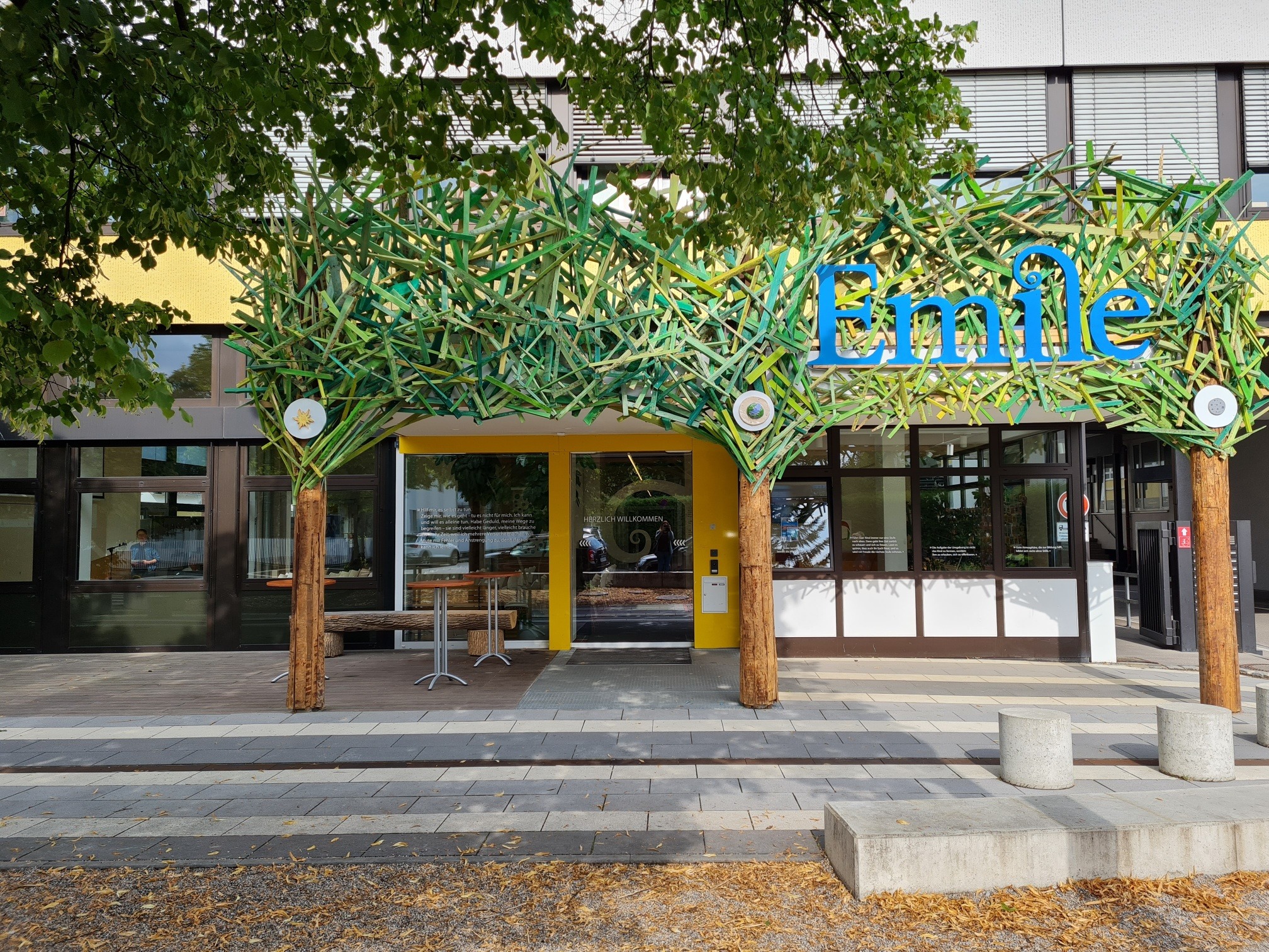 In Zusammenarbeit mit zwei Bildhauern und Künstlern (Peter Heesch www.peter-heesch.de) und Andreas Pfenninger (art-pfenninger.de) wurde der EmiLe-Eingangsbereich von den Schüler_innen der 8. Klassen in 2 Wochen neu gestaltet.